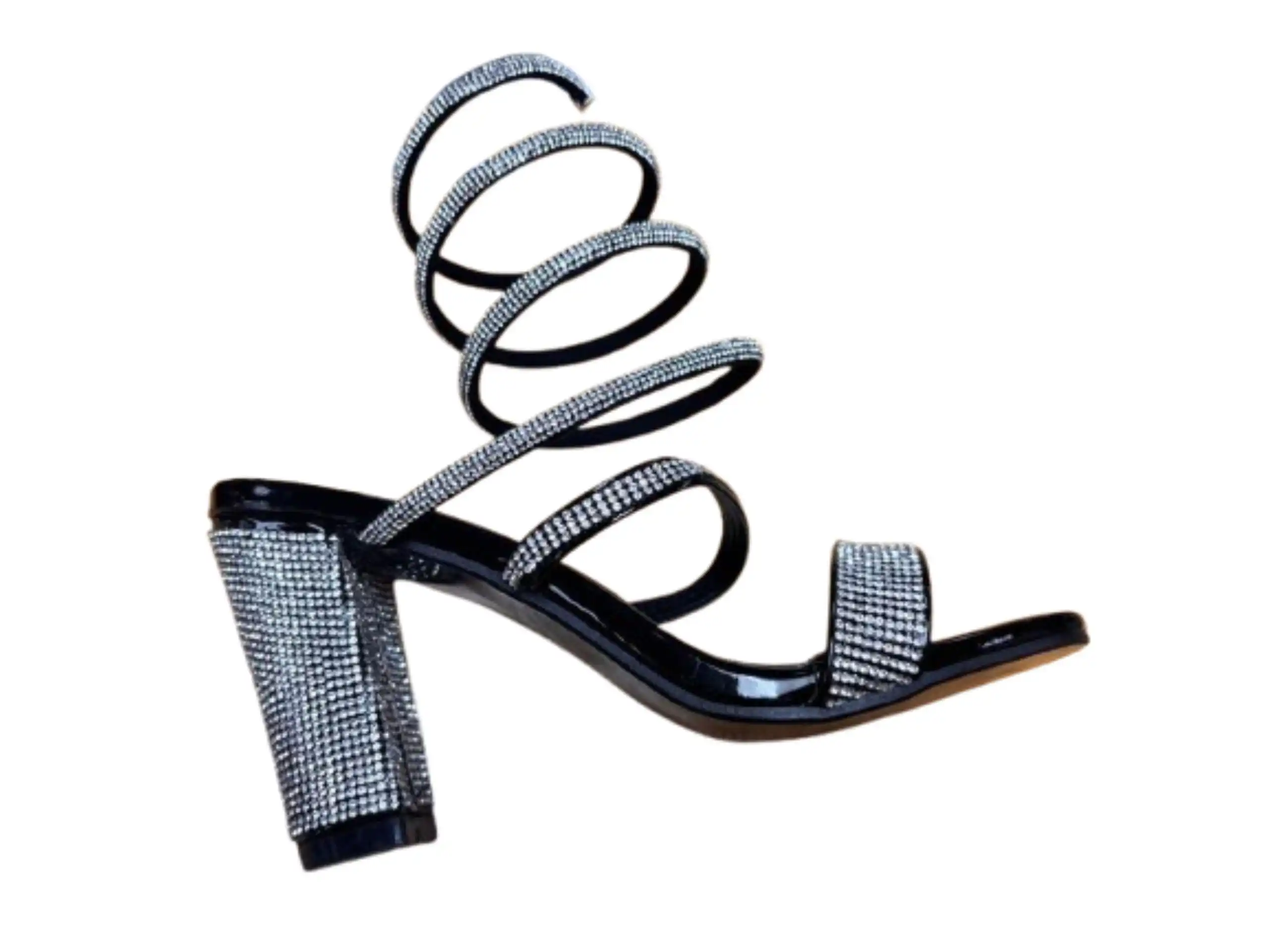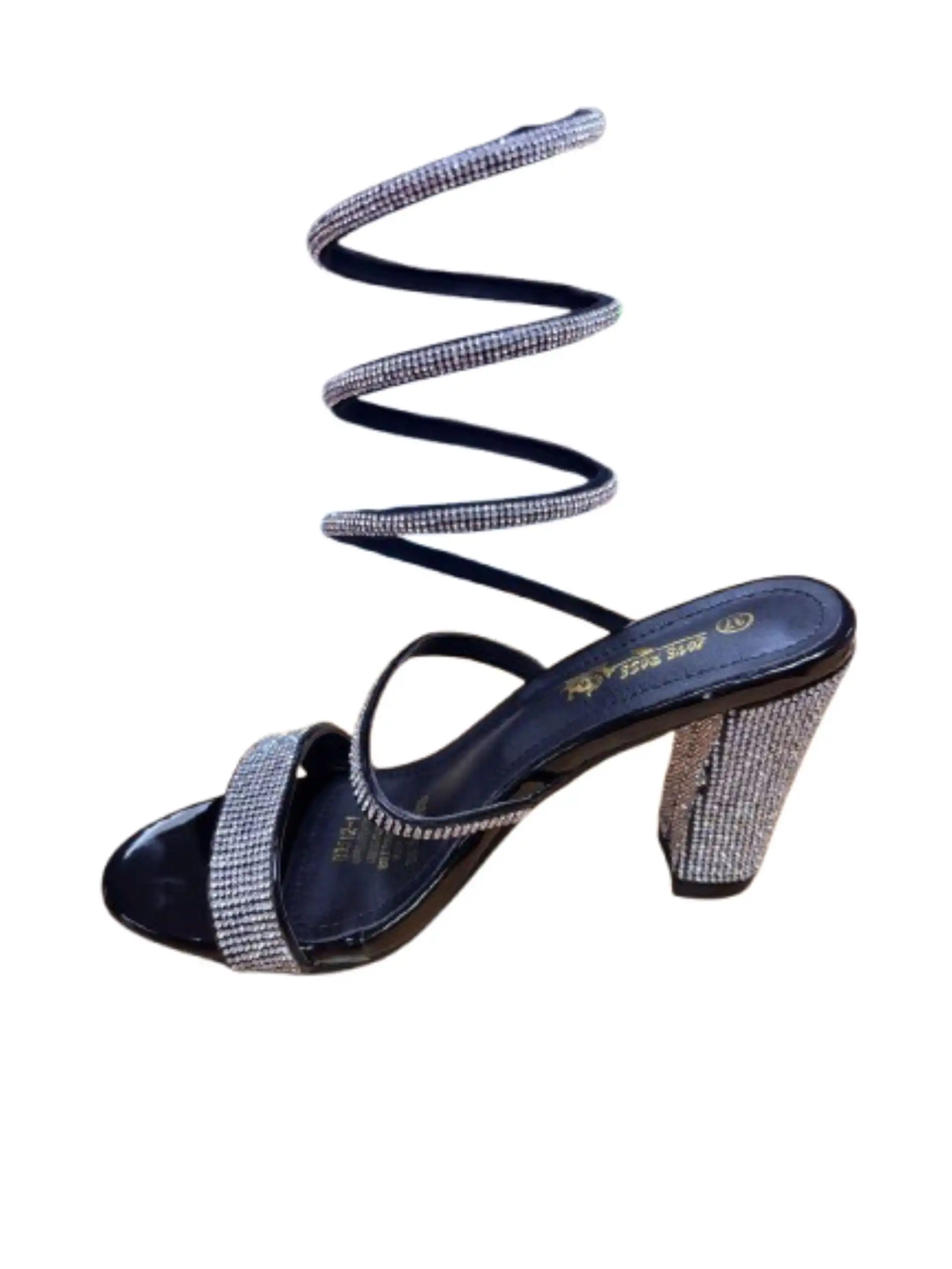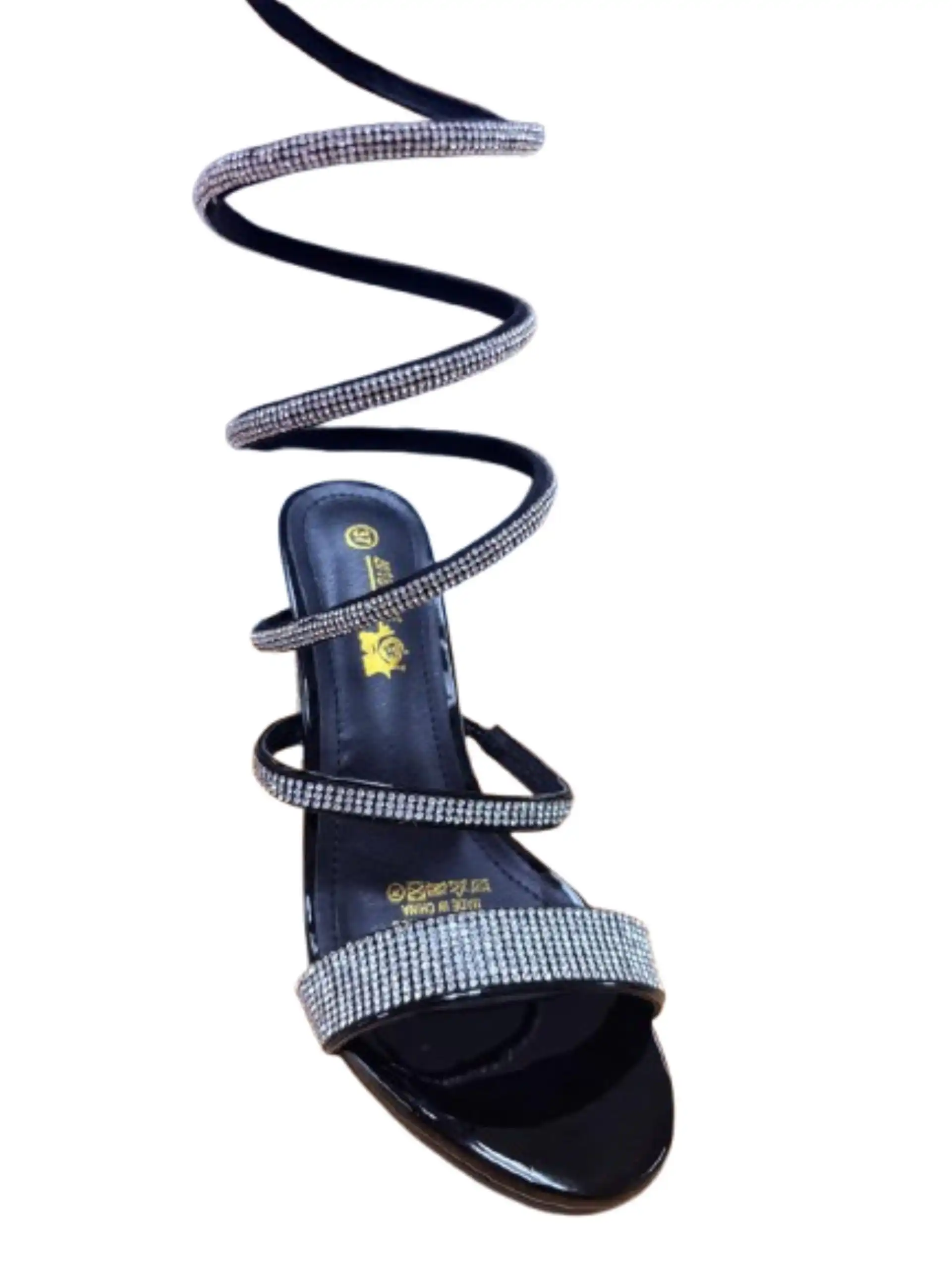 LOVE ROSE SPIRAL RHINESTONE STRAP AND HEEL BLACK